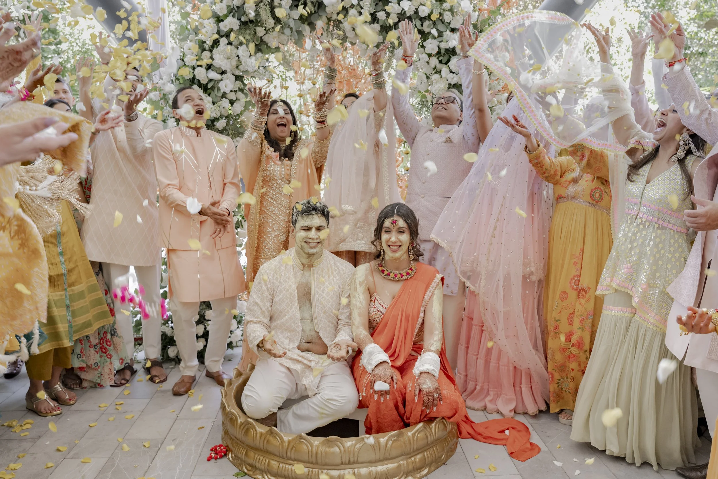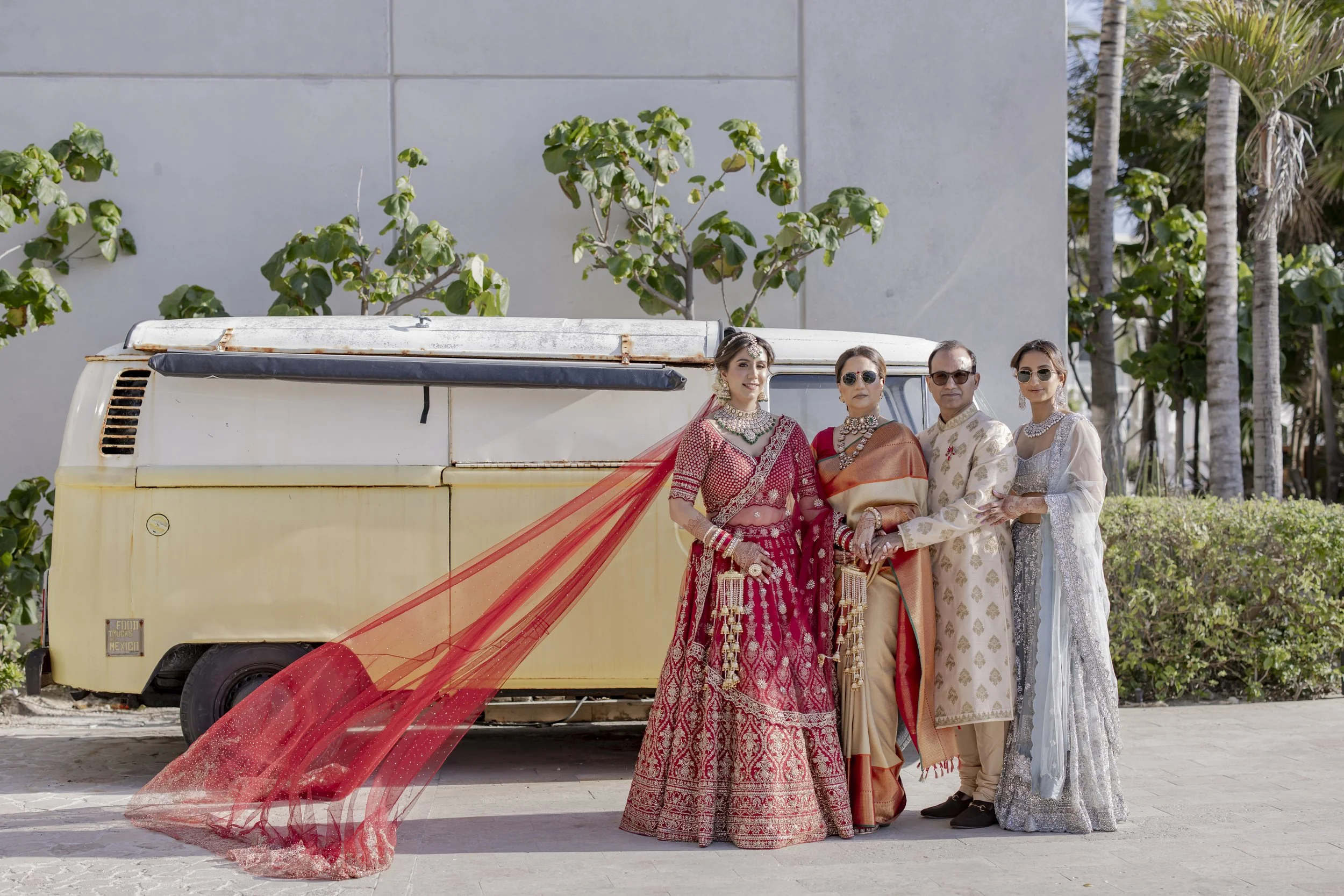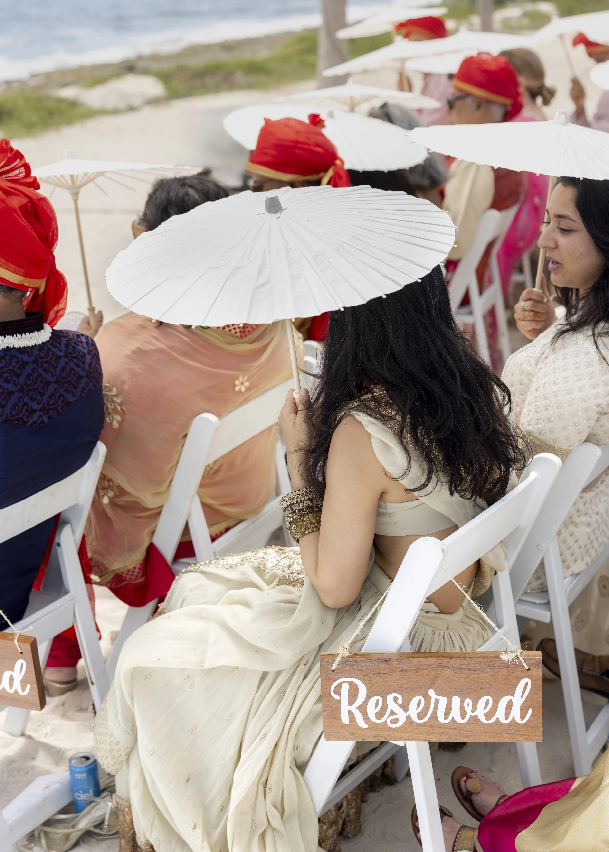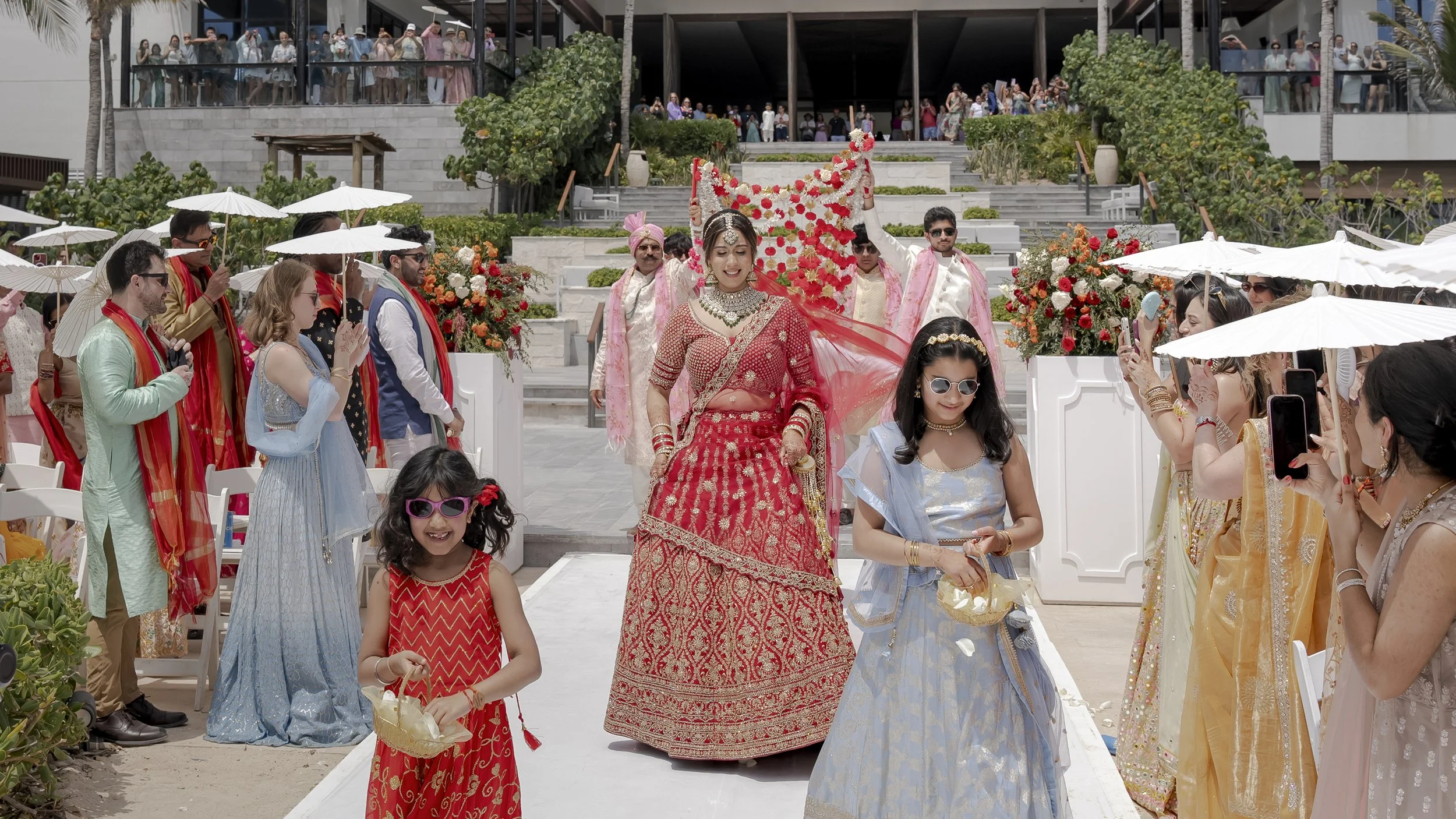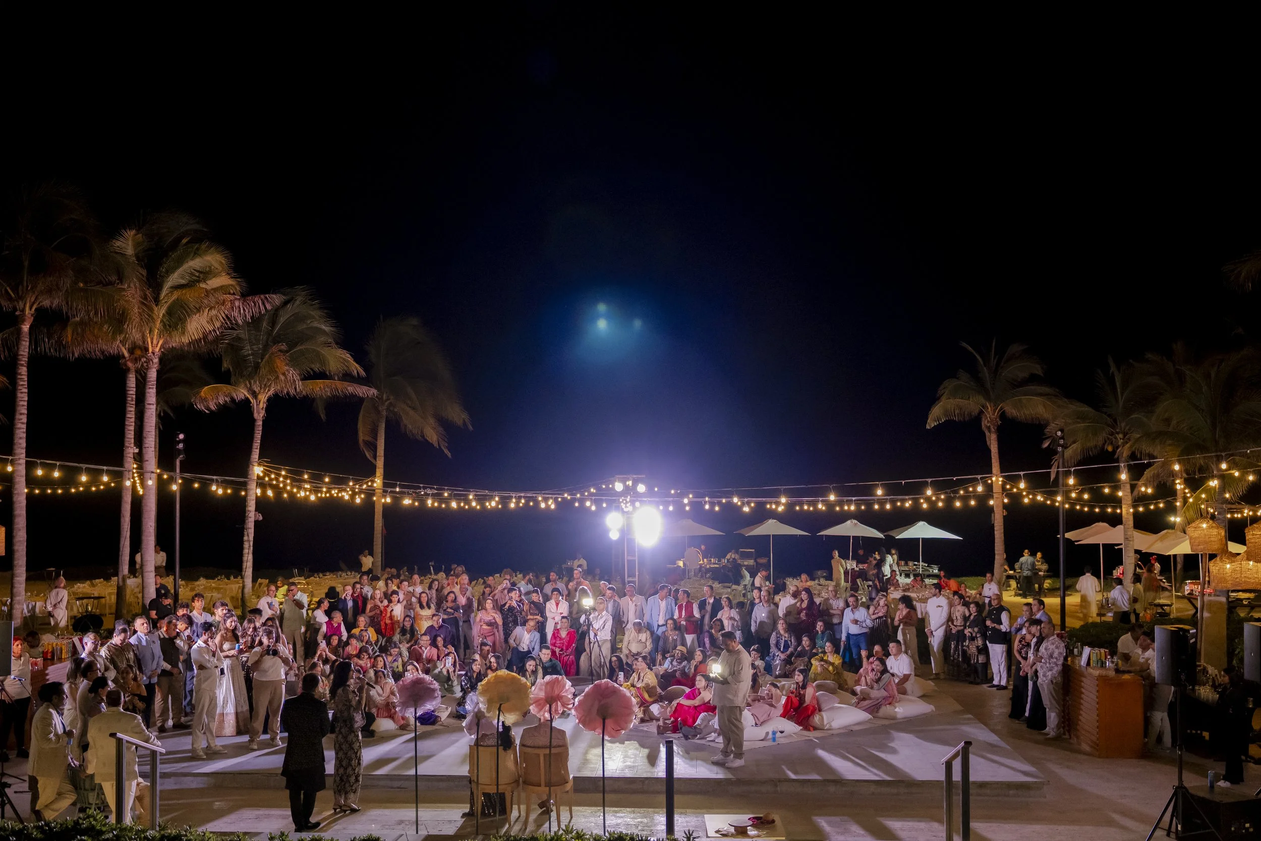 Aditi & Saubhav’s wedding in Tulum was a breathtaking celebration by the sea. The mandap, draped in soft blush fabric and adorned with cascading pastel blooms, stood gracefully against the ocean backdrop. The bride, radiant in red and gold, walked down the aisle to her favorite song, while the groom looked regal in ivory. Friends shaded the couple with dainty umbrellas as they circled the sacred fire under the golden sun. Later, everyone danced the night away under the Mexican skies, a perfect finale to a celebration filled with love, laughter, and togetherness.