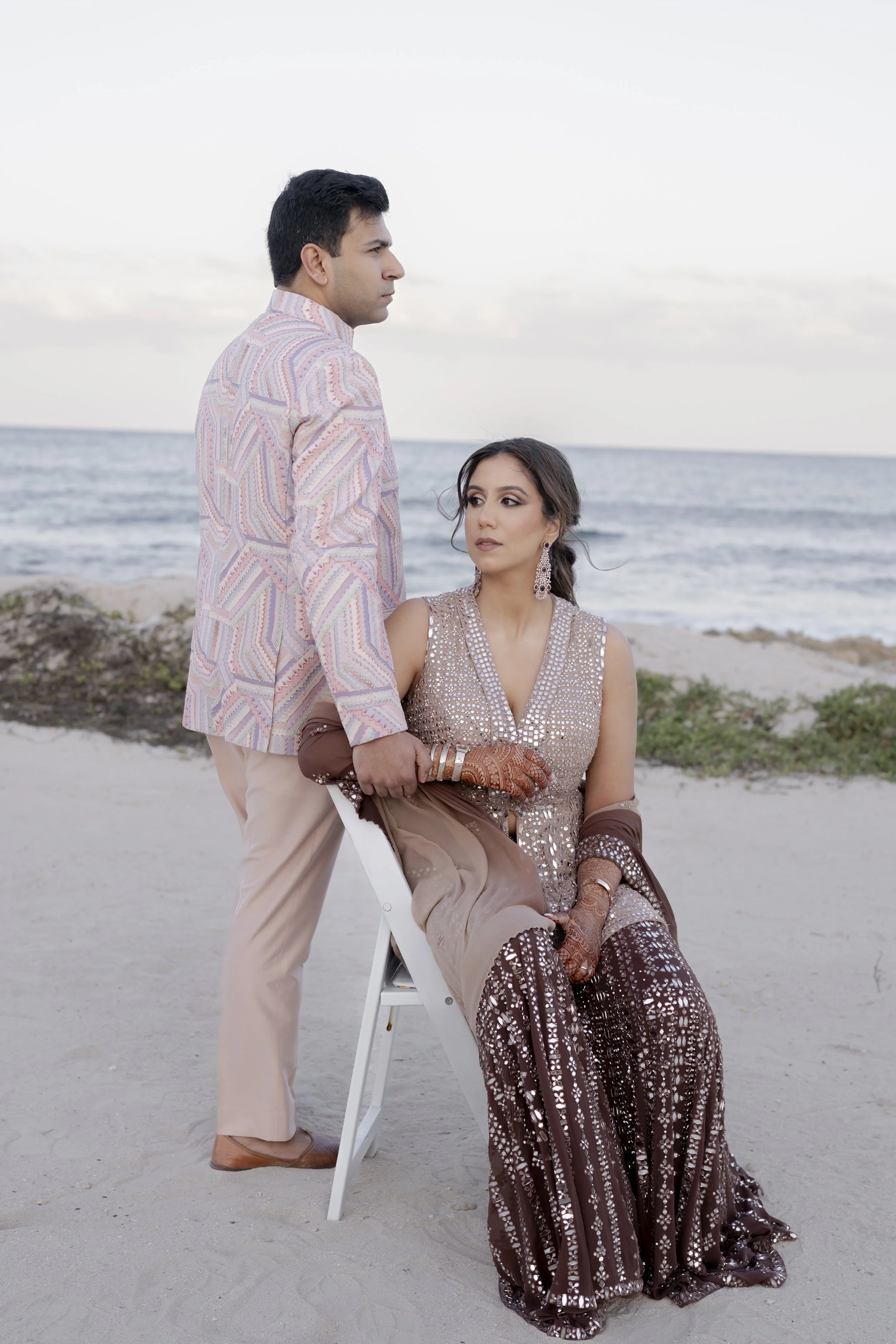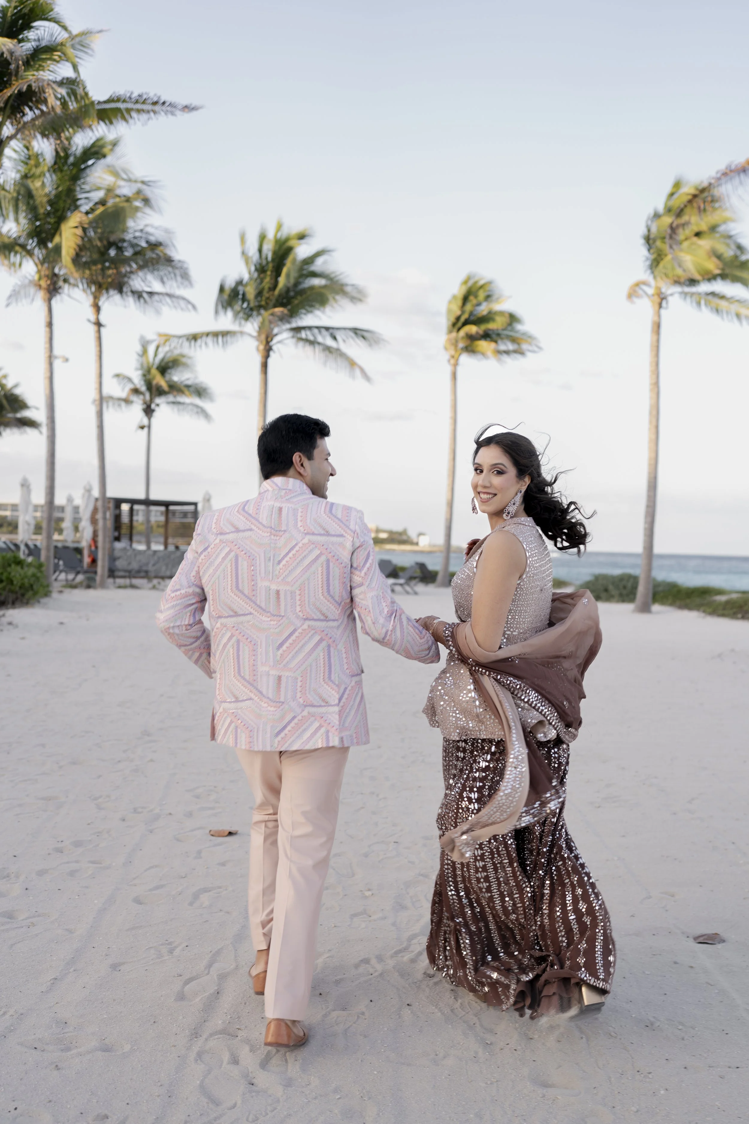 Set against the aquamarine embrace of the Yucatán Peninsula, their celebration unfolded like a symphony of love—beginning with a vibrant welcome party and mehendi, flowing into the golden hues of a joyous haldi, the rhythm of a spirited sangeet, and dreamy beachside pheras. The festivities culminated in a grand reception, where heartfelt speeches from loved ones wove memories that will linger forever. And true to their spark, the wedding carried the perfect hashtag—#Pathaka—celebrating both their names and spark and that defined their journey.