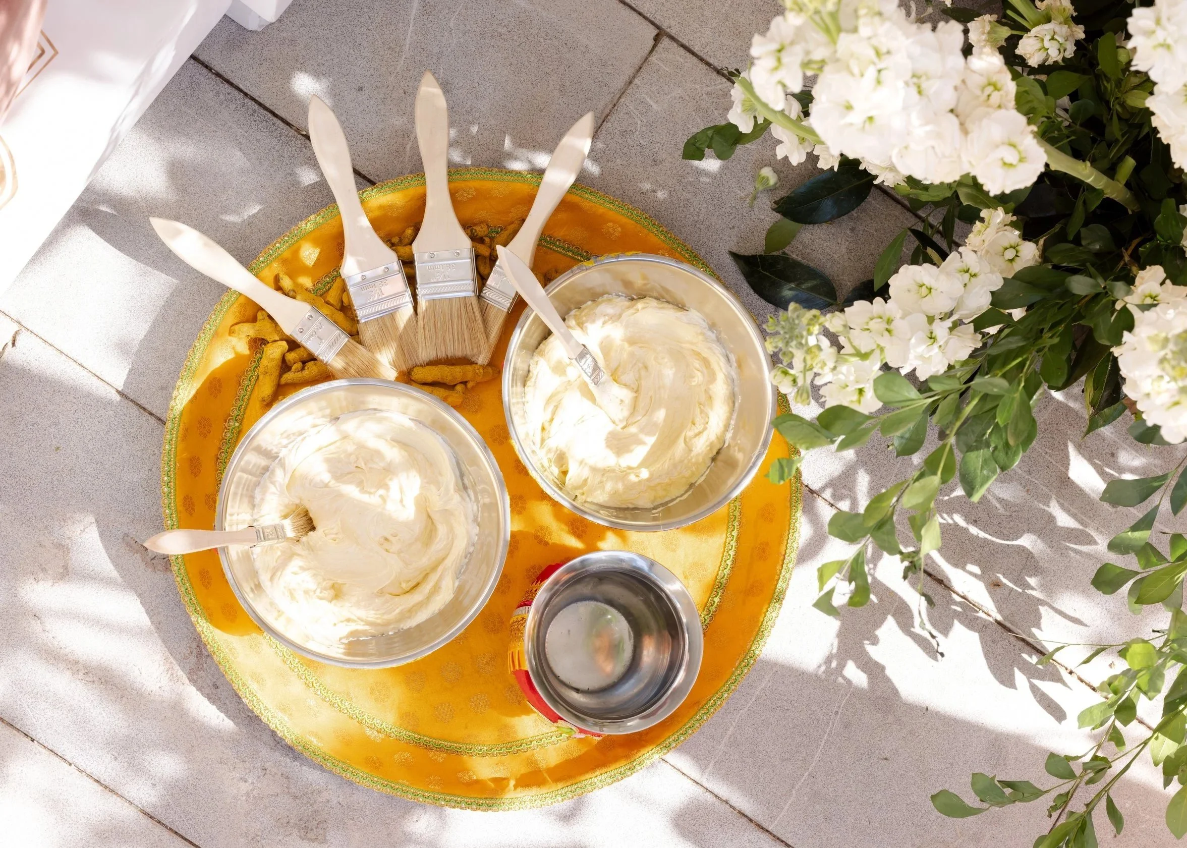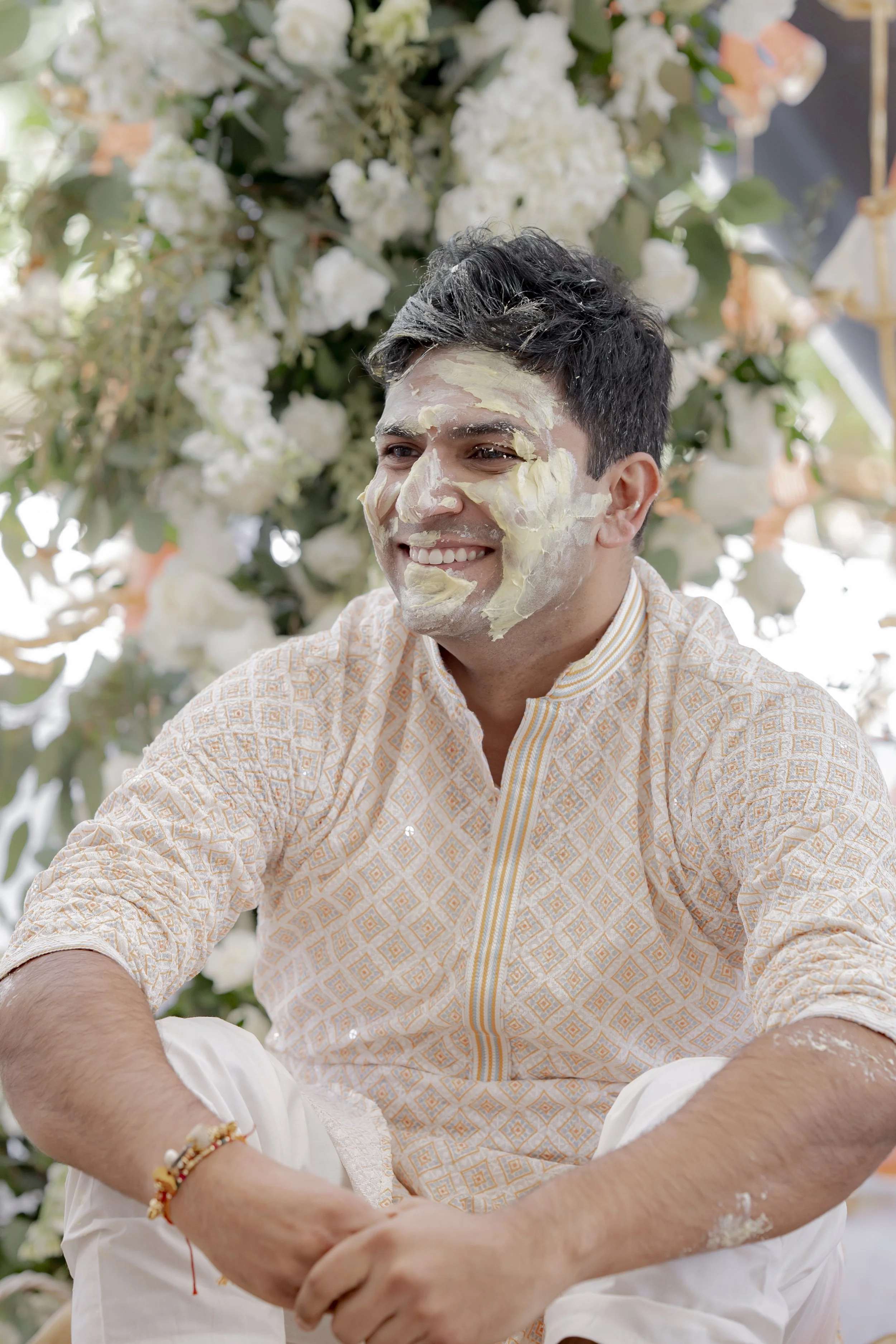 The Haldi ceremony was a vision of vibrance, tradition, and joy. The setup beautifully balanced aesthetics with cultural essence—golden thalis adorned with chooras, coconuts, petals, and haldi bowls set the tone for the rituals. The bright décor, cheerful details, and warm sunshine created an atmosphere filled with laughter, music, and togetherness. Surrounded by their loved ones, the couple’s Haldi became a happy heartfelt celebration that was as beautiful as it was emotional.
