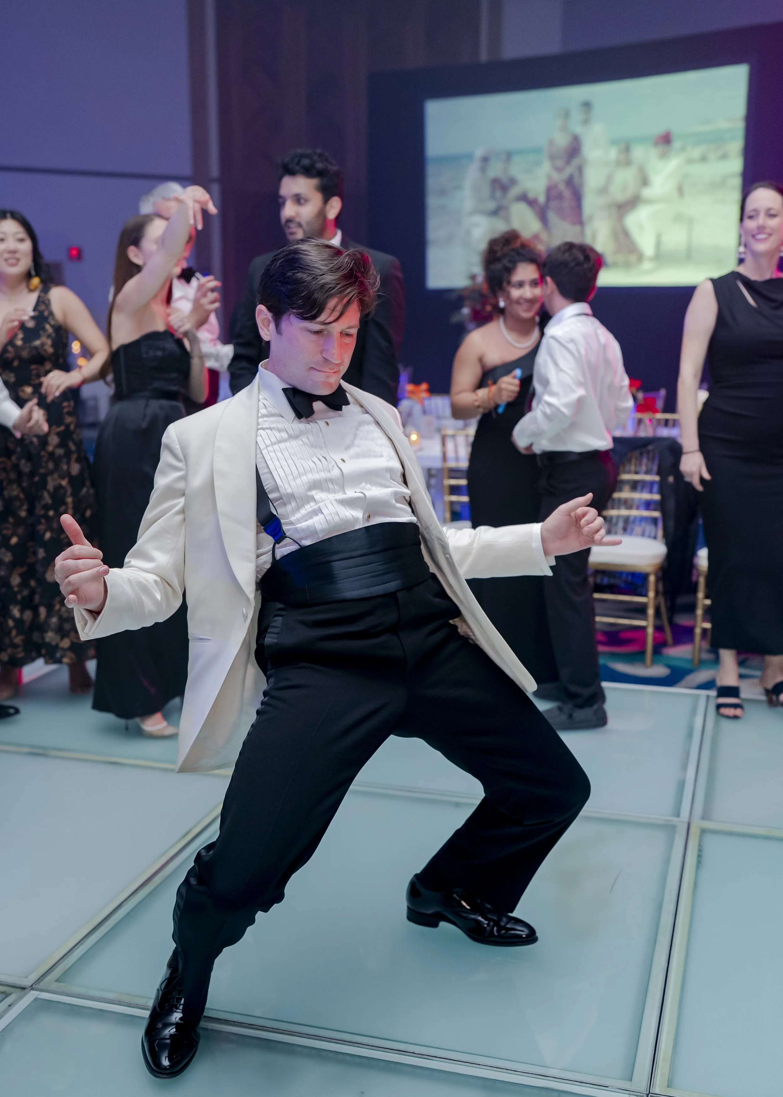 The Sangeet unfolded by the sea in a vibrant, lively setting, with chic décor, twinkling lights, and the hashtag #Pathaka adding a playful touch. The evening came alive with heartfelt speeches, energetic dance performances by family and friends and the bride and groom’s loved one’s lighting up the floor.