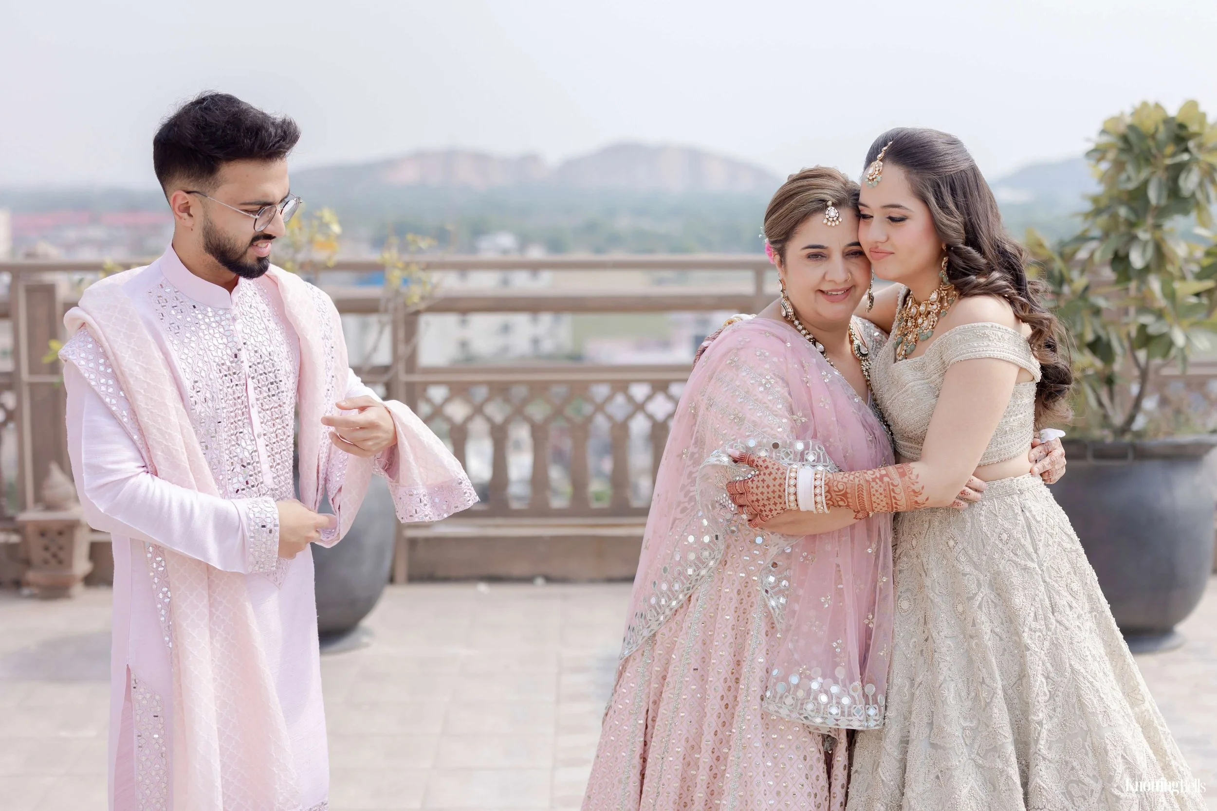 On her wedding day, Simran’s first look was reserved for her parents. Her father, the first to see her in a bridal attire, stood overcome by emotion. Her mother and brother soon joined, their tears matching hers, before nearly fifty loved ones—siblings, cousins, and friends- gathered in awe. It was more than a reveal; it was a symphony of love, a moment that held the weight of years of love, memories, and unbreakable bonds. A reminder that while weddings celebrate two souls, they also celebrate the families and the forever love we carry with us.
