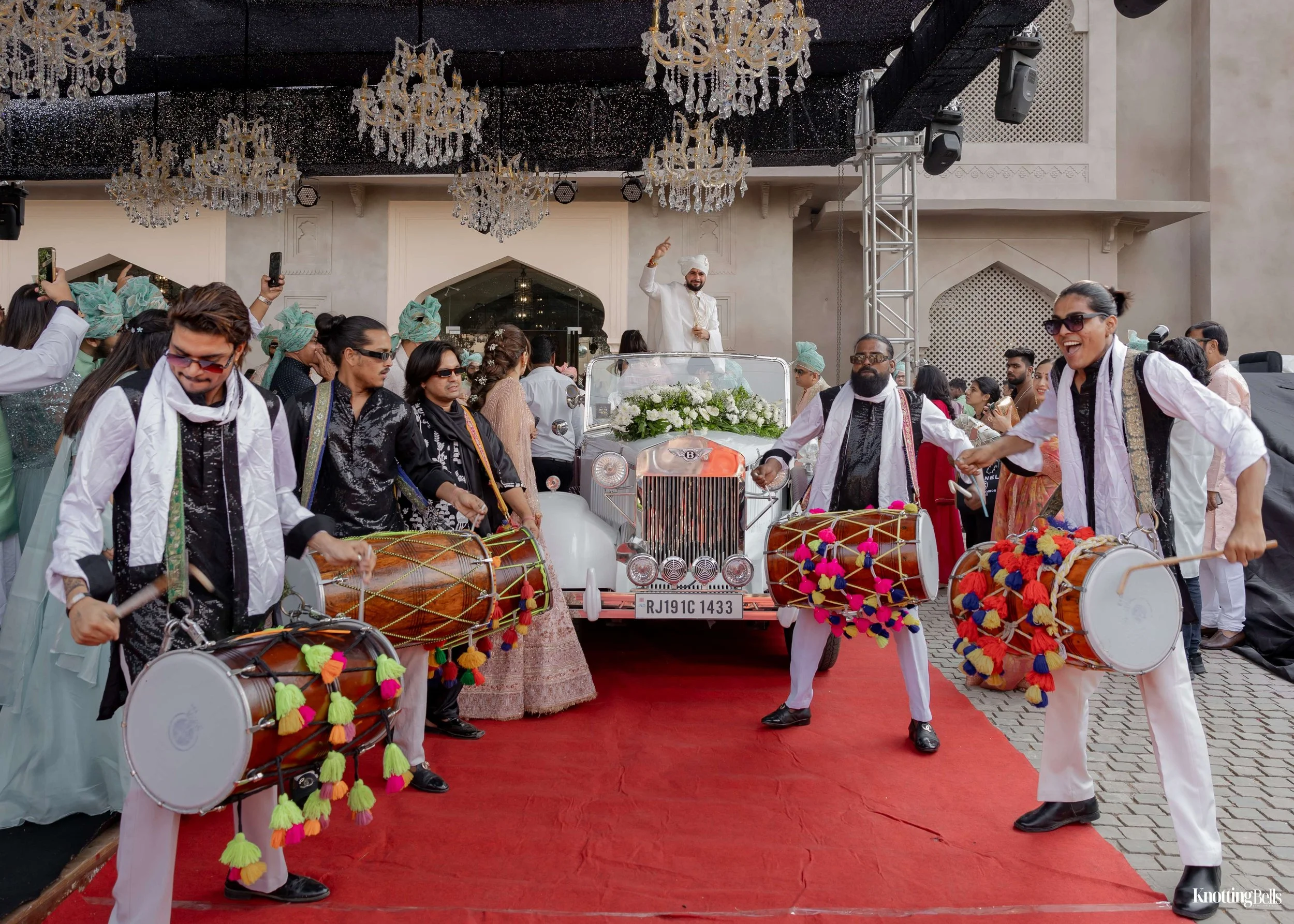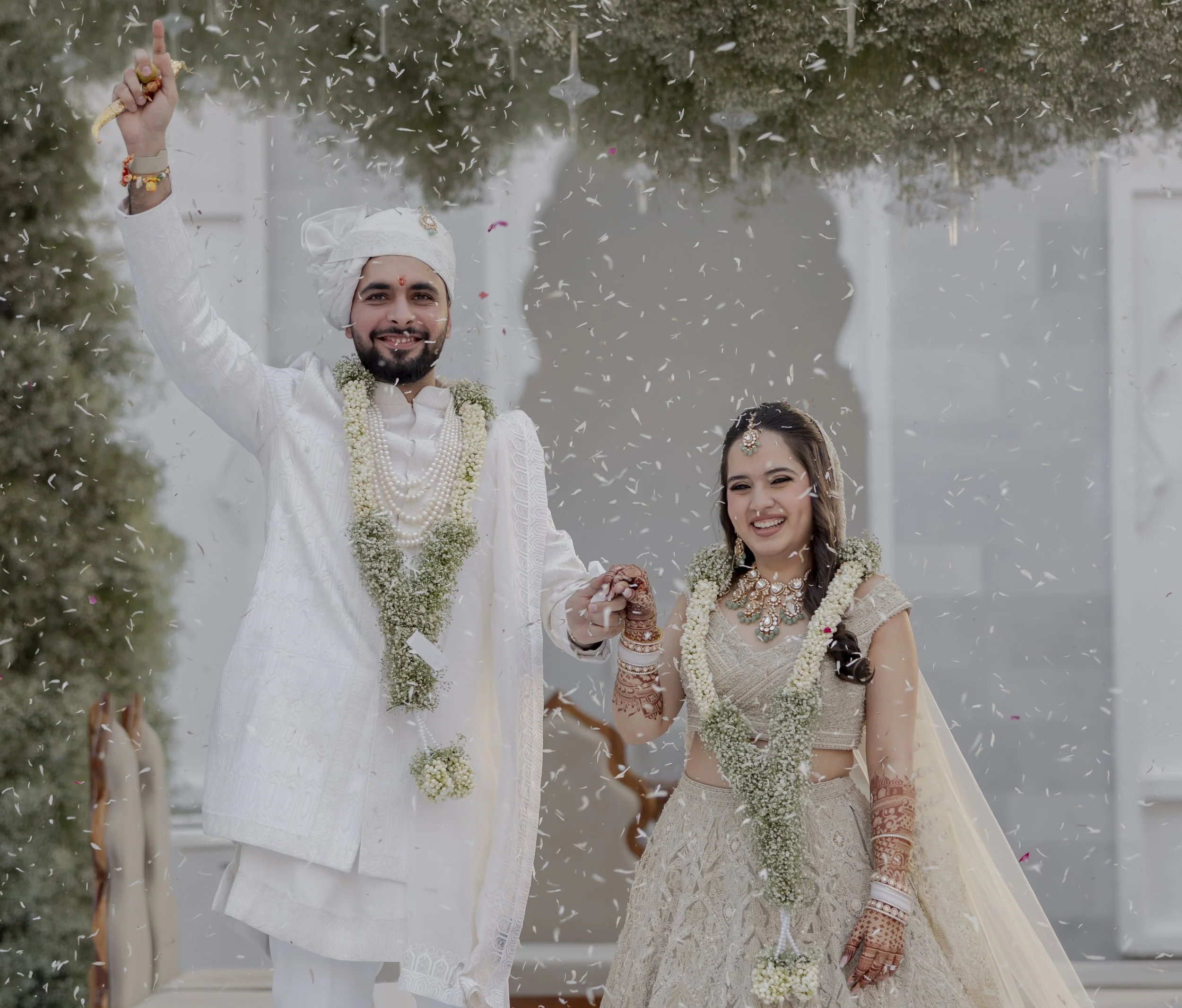 Simran and Pratik chose Fairmont Jaipur as the canvas for their wedding, a palace that mirrored the grandeur of their love story. With its regal architecture, majestic domes, and intricate detailing exuding royal charm, the venue offered the perfect blend of heritage and luxury.